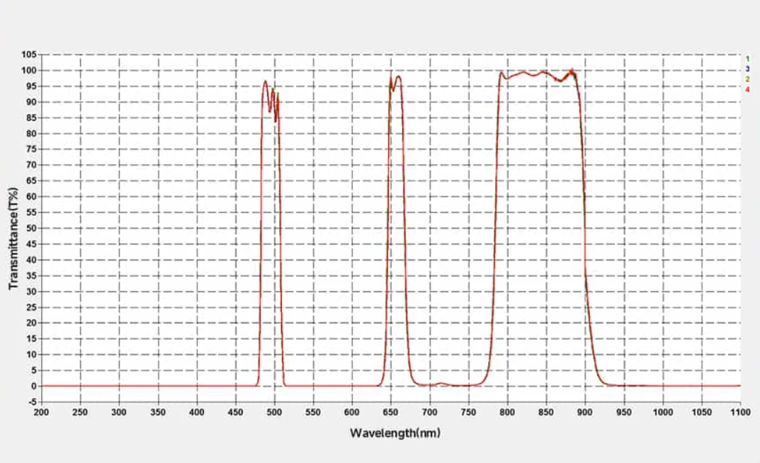 When used with color astronomical cameras or DSLR, MILC cameras, the effect of multiple narrowband filters is achieved with a single filter in one shot. As a result, by blocking 99% of light pollution, only three wavelength ranges, the H-beta, OIII, and H-alpha ranges, are visible in astrophotographs. With a transmission capability of over 90% in these ranges, it competes with similar products from well-known brands.