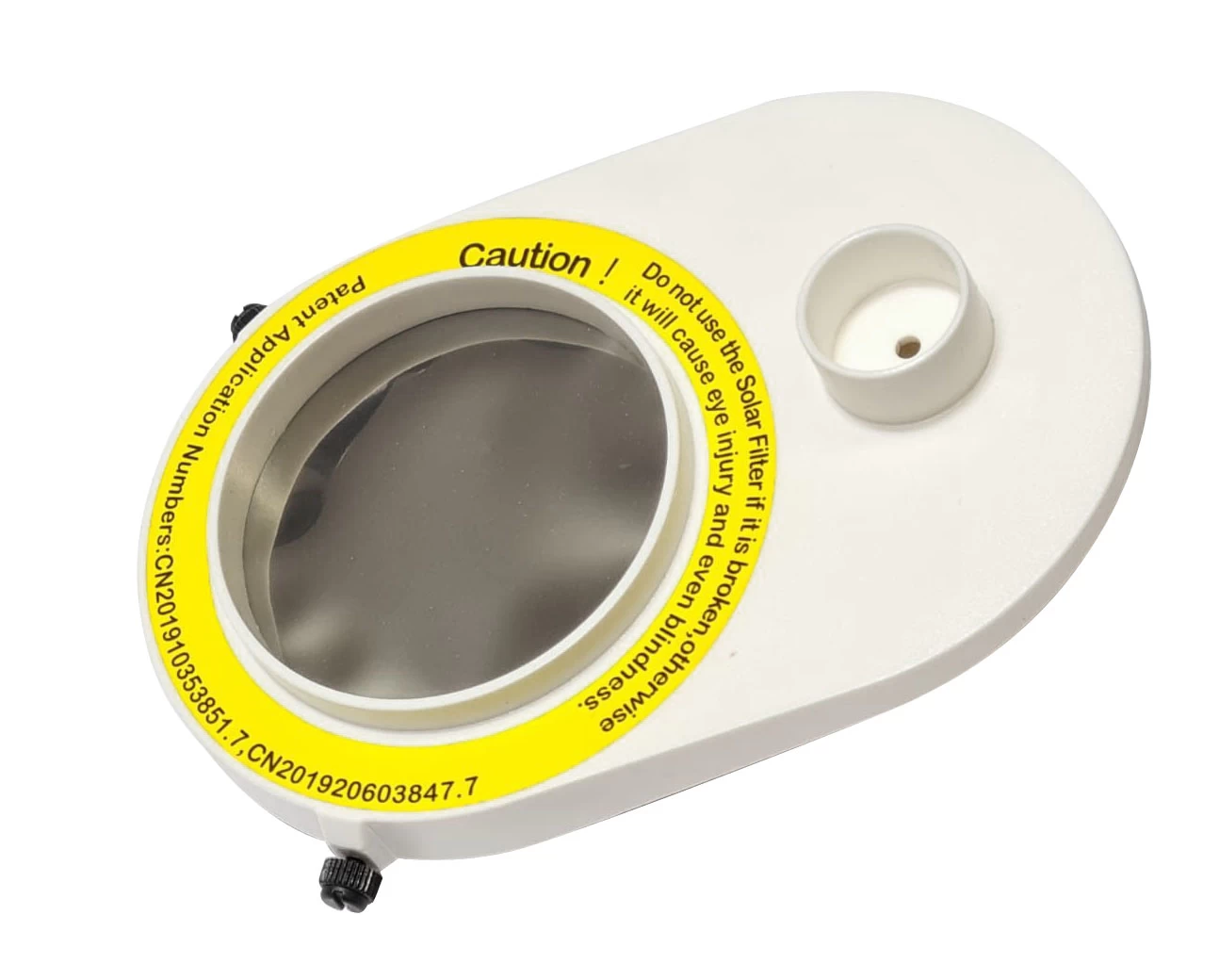 The solar filter can be mounted on an external diameter of 67 mm, like the Acuter 50 mm Newtonian telescope. The plastic mount also has a solar viewfinder.