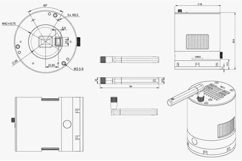 The main camera boasts a state-of-the-art sensor from SONY with 8 megapixels resolution (3840 x 2160 pixels), a 6.26 x 11.13 mm sensor and 2.9 µm pixels, making it a contender in many areas of astrophotography.