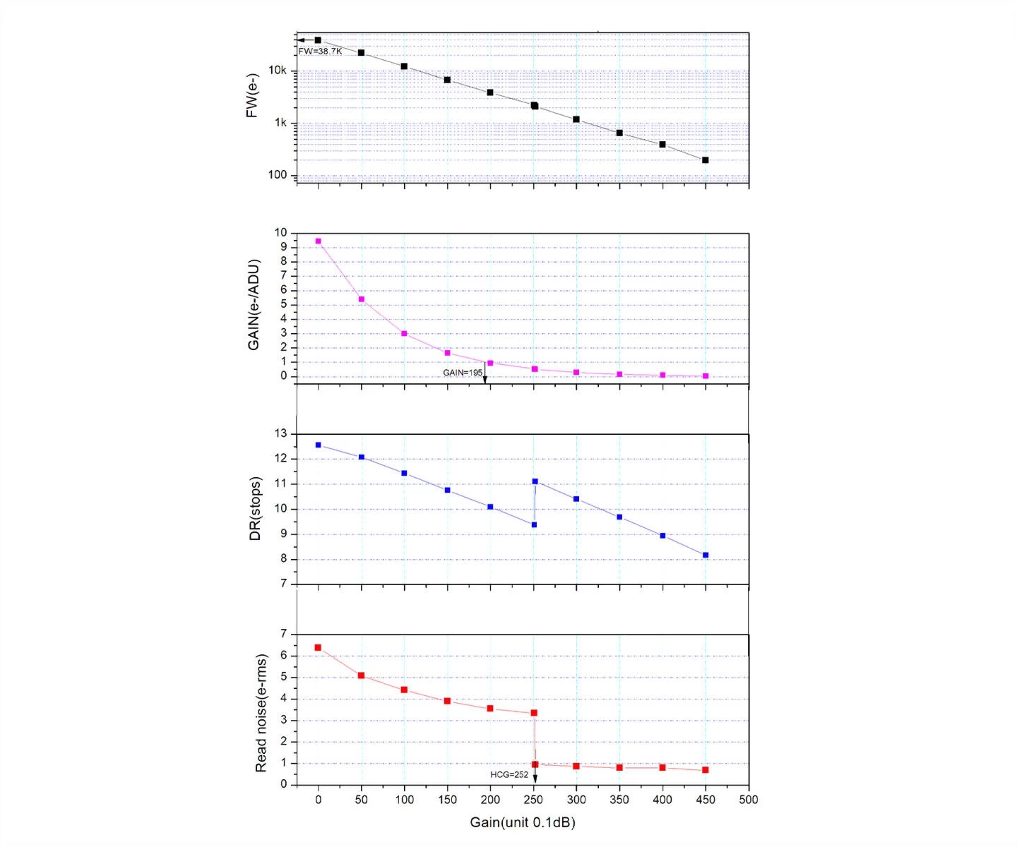 The sensor's 12-bit output allows the capture of 4096 shades of colour (compared to 8-bit, or "only" 256 shades per colour channel on most cameras). The large sensor is also useful for taking pictures of the sun and moon. The camera also features a built-in HCG mode, which effectively reduces readout noise at high gain while maintaining the wide dynamic range that would only be experienced at low gain.