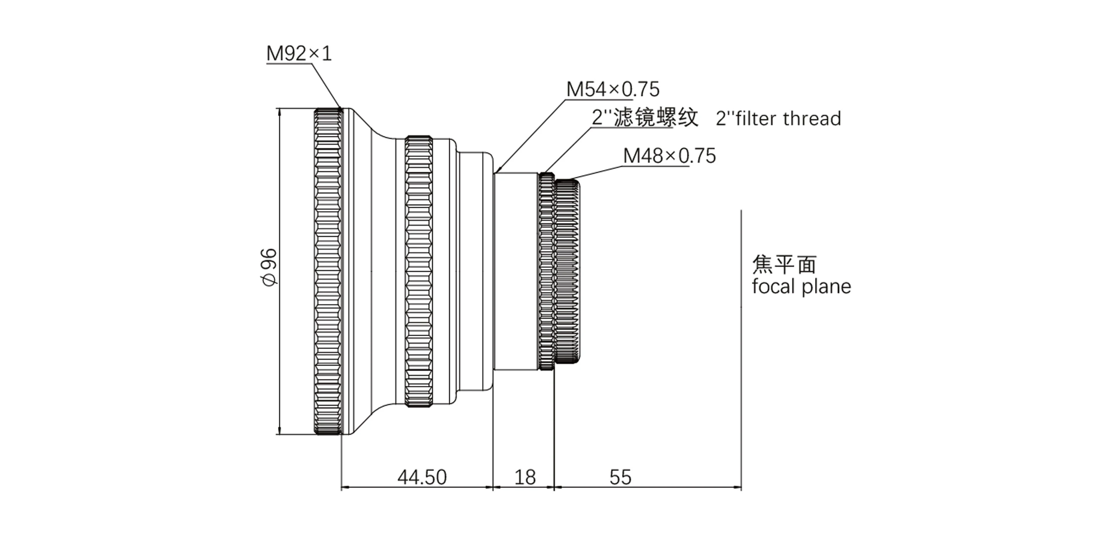 A reduktor 44 mm képátlóval rendelkezik, amely full-frame kamerák használatához is tökéletesen megfelelő. A kamera oldalon M48 és M54 meneteket találunk, amelyek lehetővé teszi a széles körű kompatibilitást a különböző rendszerekkel. M48 csatlakozás során a klasszikus 55 mm szenzortávolságot kapjuk, mely 73 mm-re növekszik M54 menet használatakor.