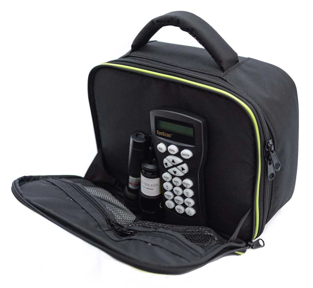 A közepes hordtáskába 1.25-ös és 2"-os okulárok, zenittükör, szűrők és adapterek, észlelő atlaszok és még sok más apróság helyezhető, a külső-belső zsebeknek köszönhetően. A táska 5 mm vastag bélése és erős vászon borítása hatékony védelmet nyújt értékes kiegészítőink számára. A tépőzáras belső térelválasztók segítségével szabadon alakítható a táska belső elrendezése, igazodva a kiegészítők méretéhez.