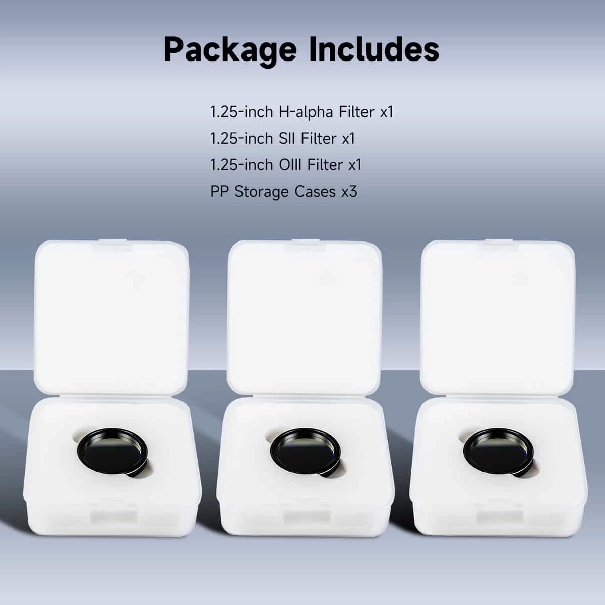 Az OIII 500.7 nm, a H-alfa 656 nm, az SII pedig 672 nm hullámhossz tartományokban több mint 90% fényáteresztő képességgel bír. A szűrőkészlet mellett nincs szükség további UV/IR szűrő használatára.