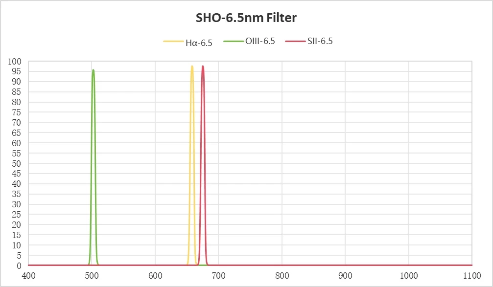 ToupTek keskenysávú (6.5 nm) SHO szűrő készlet (1.25") verhetetlen ár/teljesítmény arányú megoldást jelent a keskenysávú asztrofotózás iránt elkötelezett észlelők számára. A szűrő készlet lehetővé teszi a csillagászati objektumok (pl. emissziós ködök) részletes fotózását, a hidrogén-alfa (Ha), oxigén-III (OIII) és kén-II (SII) vonalak mentén. A mindössze 6.5 nm széles tartományban áteresztő szűrők hatékonyak a városi fényszennyezés hatásainak csökkentésében.